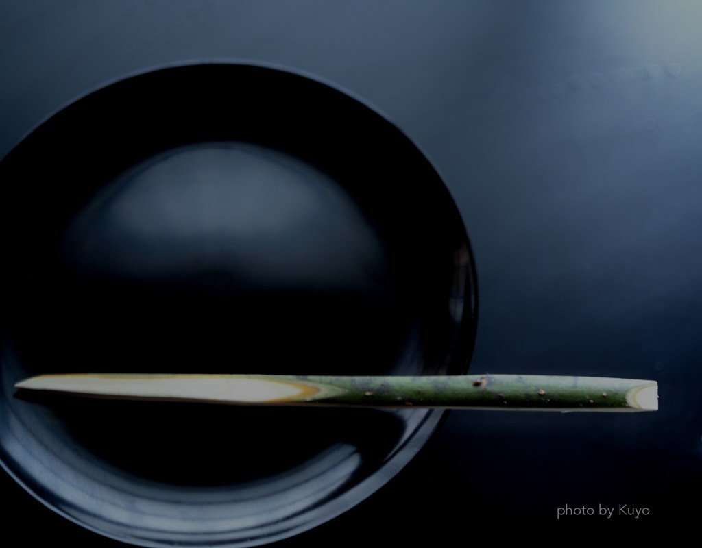 茶の湯では、菓子切りや箸のほか、香煎としても利用されます。白湯に細かく刻んだ黒文字の枝を浮かべていただくと僅かな香りが立ちます。少し煎じて出して頂いても。この香りがお客様をもてなす最高の贅沢とされています。クロモジは精神の安定を促す成分もあるため、お客様に茶事の前の時間をゆっくりしていただくために用いられてきたと考えられます。