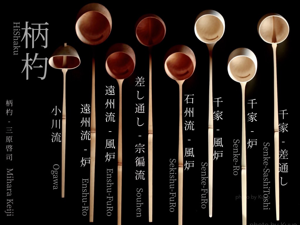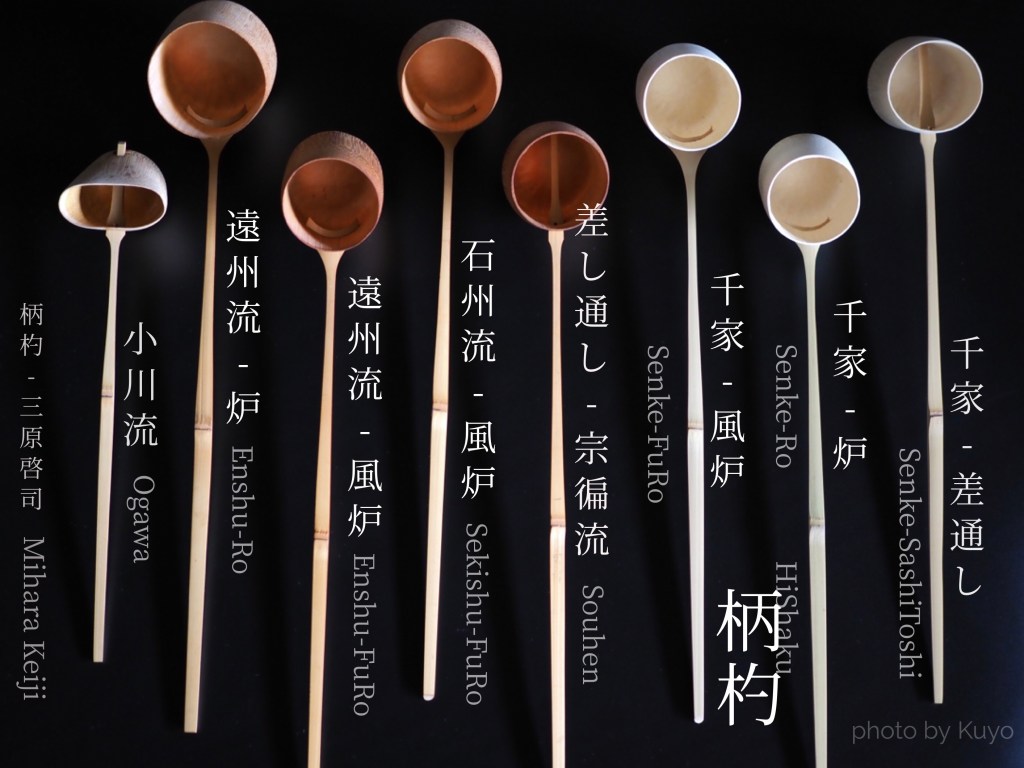 柄杓の合の大きさ、柄の長さ、柄の形は流派によって様々です。