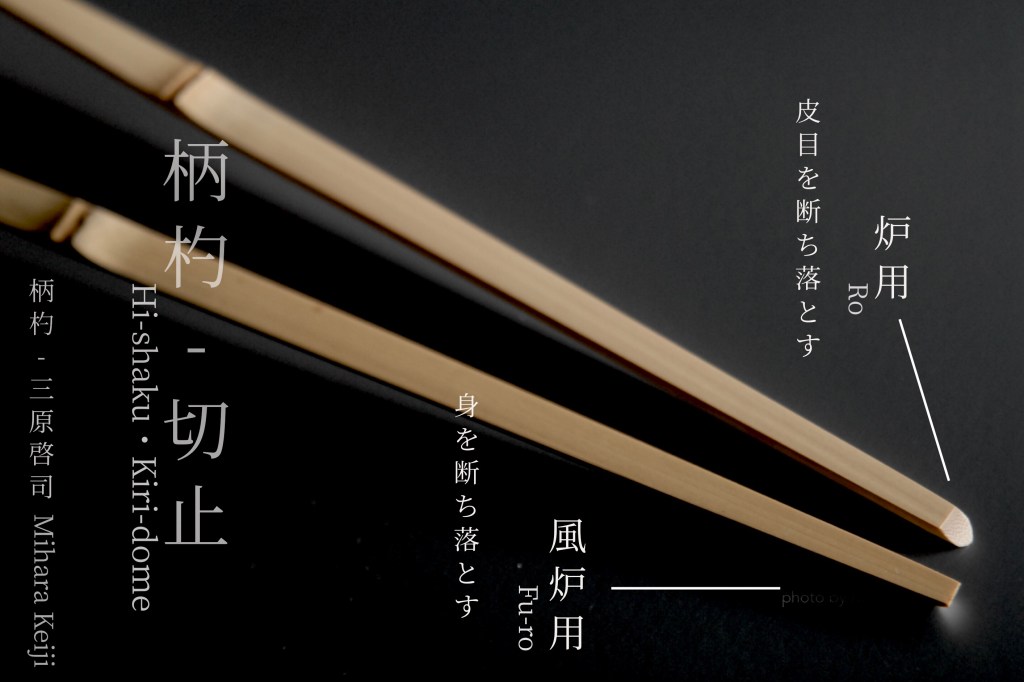 柄杓の切止は炉用は皮目を断ち落とし、風炉は身を断ち落とします。
